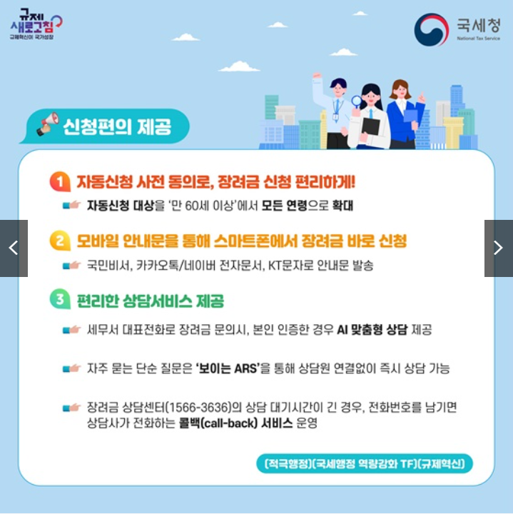 기존에는 만 60세 이상 고령층에 한정되었던 자동신청 대상이 올해부터는 전 연령대로 확대되었다. 자동신청에 동의한 경우, 별도의 서류 제출이나 복잡한 절차 없이 국세청에서 발송하는 안내문에 따라 간단히 신청할 수 있다.