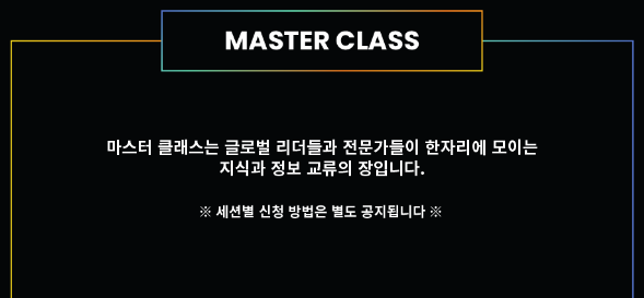 마스터클래스는 별도 신청 후 참석 가능하며, 세션별로 선착순 마감됩니다.