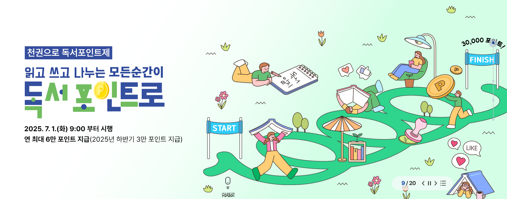 ‘천권으로독서포인트제’는 경기도가 2025년 7월부터 새롭게 시행하는 정책으로, 일정한 독서활동을 인증하면 포인트를 쌓을 수 있도록 설계된 프로그램입니다. 예를 들어 공공도서관에서 책을 대출하거나 책을 구매한 후, 관련 내용을 독서일지나 감상문으로 기록하면 포인트가 자동 적립되는 방식입니다. 독서를 하나의 행위로 그치지 않고, 생활 속 기록과 습관으로 연결되게 하는 구조가 이 정책의 핵심이라 할 수 있습니다.