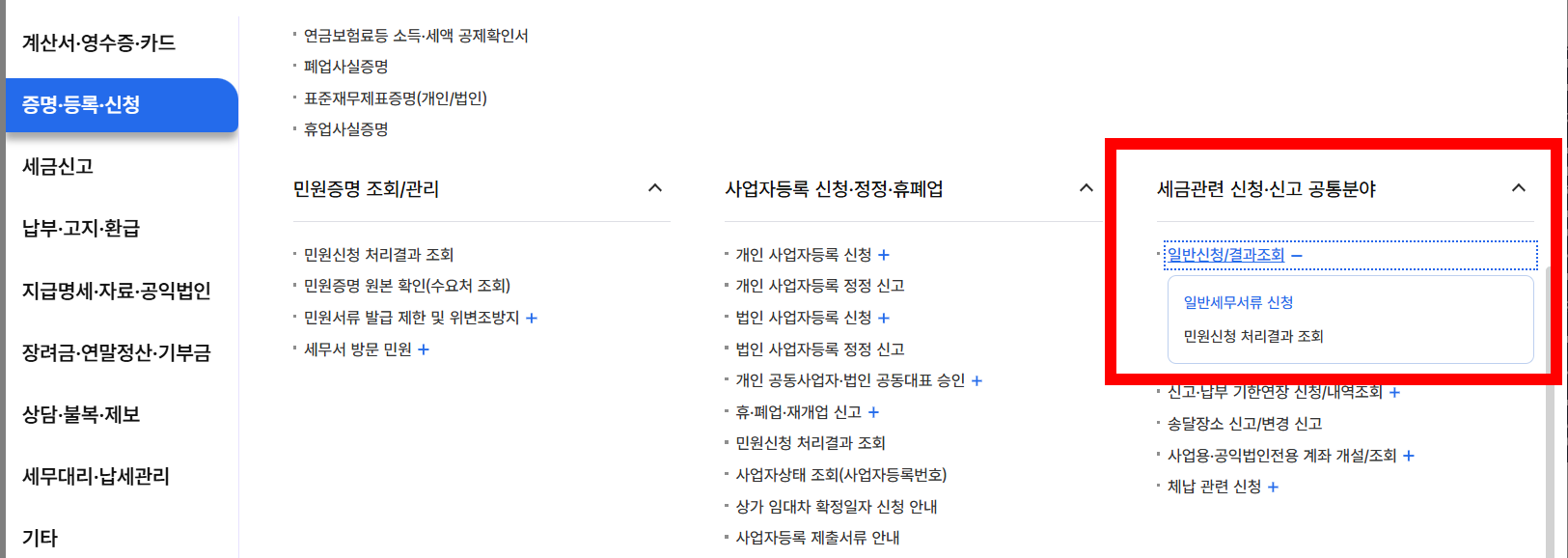 - 일반세무서류 신청