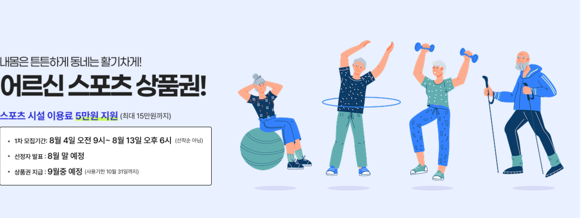65세 이상 기초연금 수급자 대상, 스포츠 활동 지원금 지급 개시!